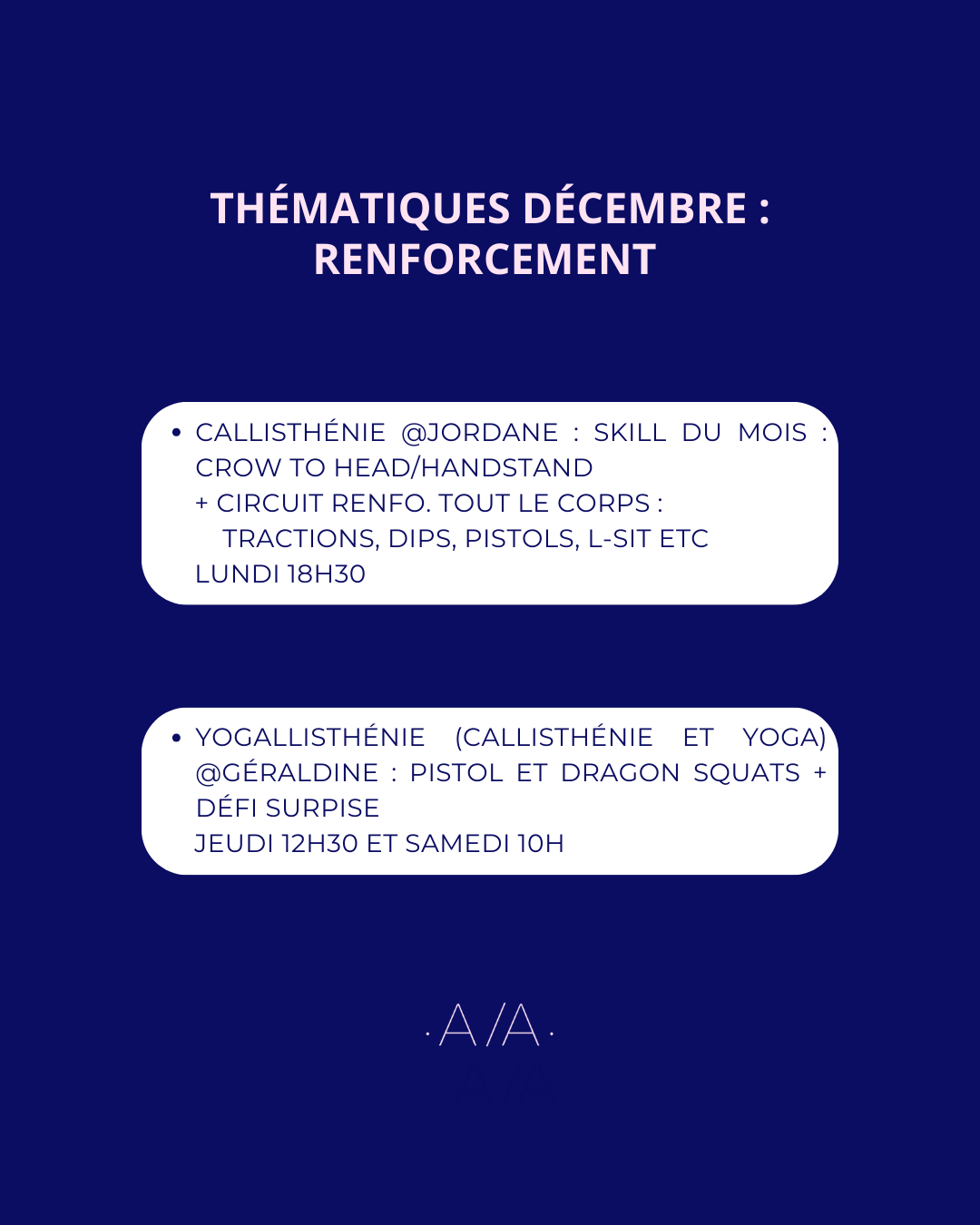 Le cours de CALLISTHÉNIE - lundi 18h30-19h45 avec Jordane